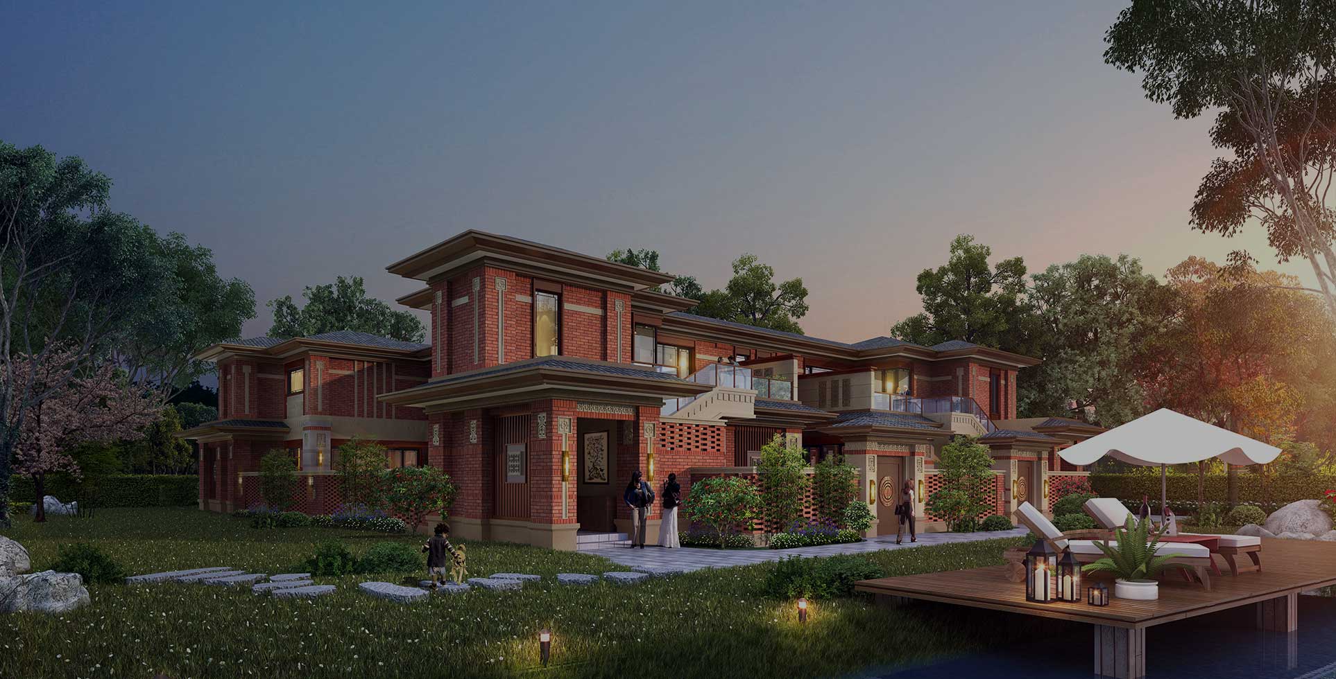 設(shè)計以項目是景區(qū),建筑是景點為思路,建造首屈一指的時節(jié)心靈度假區(qū),呈現(xiàn)景區(qū)級度假生活方式。打造塔、坊橋、溪、林、園六重美景。